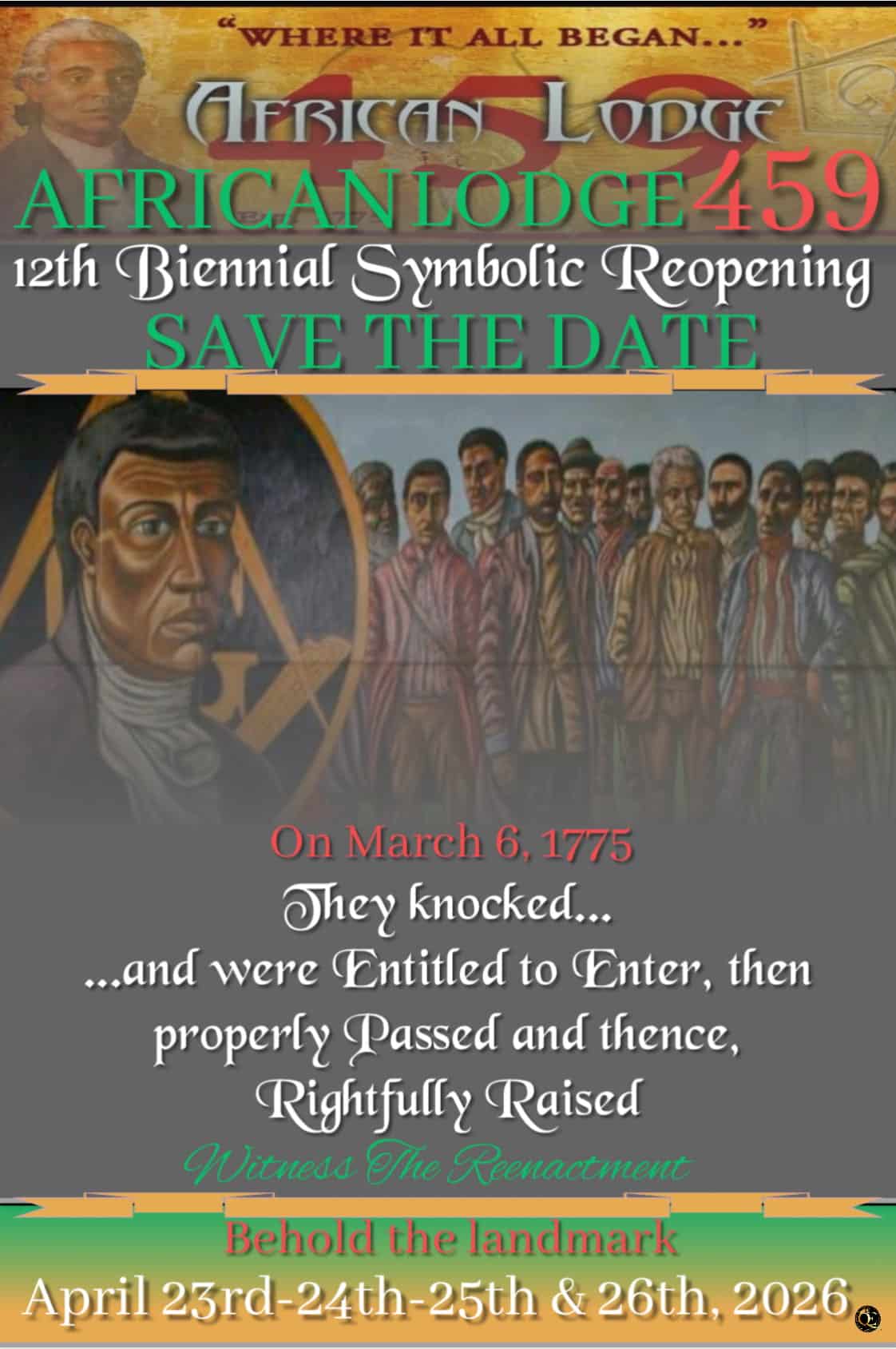 Two hundred and fifty years later, Prince Hall’s legacy as a freemason, a founding father, a leader and first black Grand Master has survived. There are now over forty-five hundred lodges worldwide, forming over forty-seven sovereign Jurisdictions with a membership of over three hundred thousand Masons who can trace their origins to African Lodge No. 459 Boston, Massachusetts.